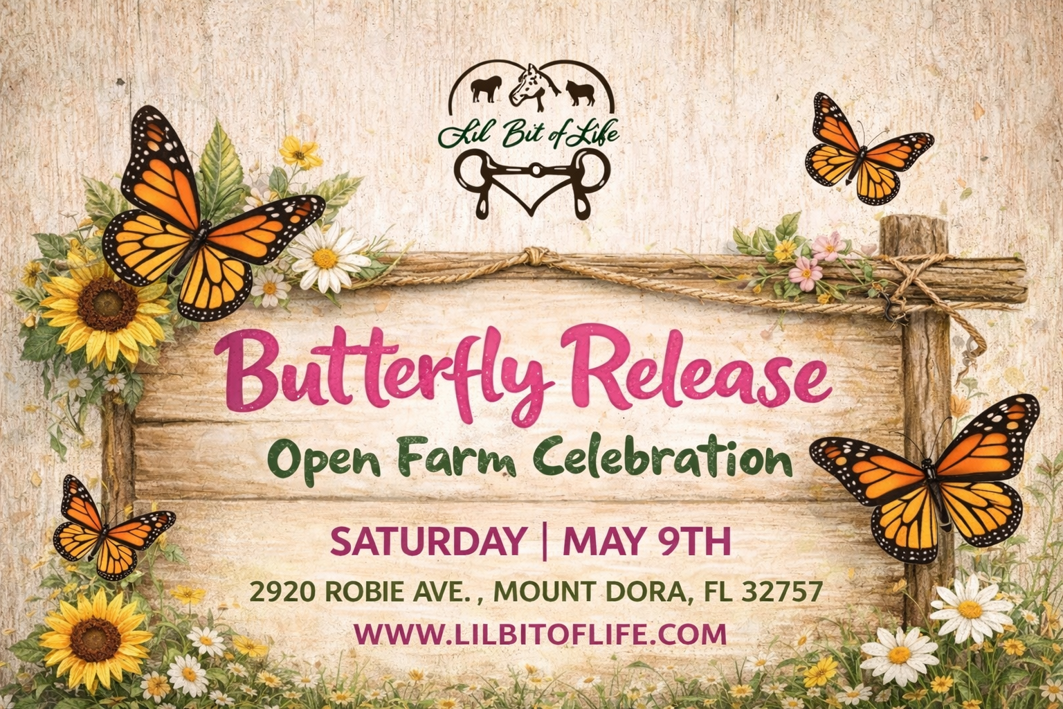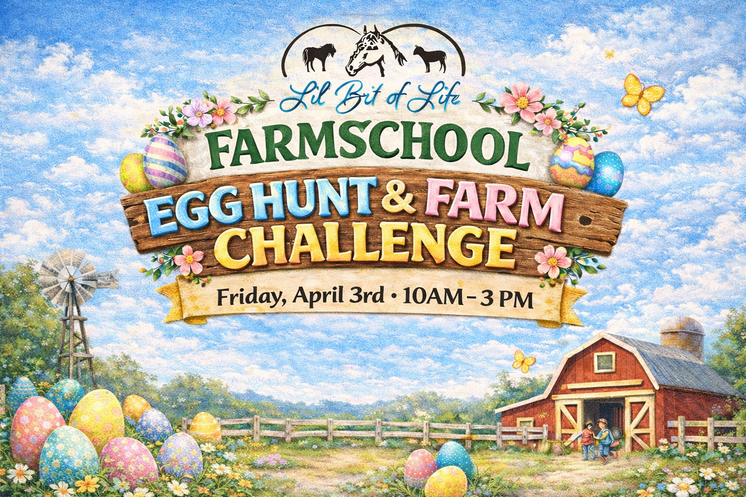 UPCOMING EVENTS ON THE FARM UPCOMING EVENTS ON THE FARM UPCOMING EVENTS ON THE FARM Spider-man Farm Adventure: Tails & Tots Toddler Day Thursday, April 2nd from 10am-2pm More Info & Ticket Purchase Here! Farmschool Egg Hunt & Farm Challenge Friday, April 3rd from 10AM-3PMRegistration is required. More Info & Registration Here! Egg-Stravaganza Open Farm Event Saturday, April 4th from 10AM-2PM More Info & Ticket Purchase Here! Butterfly Release Open Farm Celebration Saturday, May 9th from 10AM-1PM Info Coming Soon!