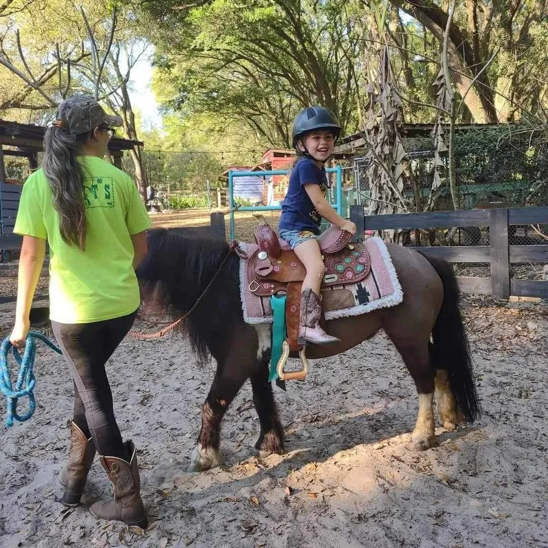 Please note that our home and the animals thrive in a relaxed environment. For the safety of both the animals and your children, we have established certain rules. During the program, parents or guardians are not allowed in the riding area but are welcome to wait in the back area near the picnic tables. We've found that distractions can pose safety issues, so we kindly request your cooperation in adhering to this policy.