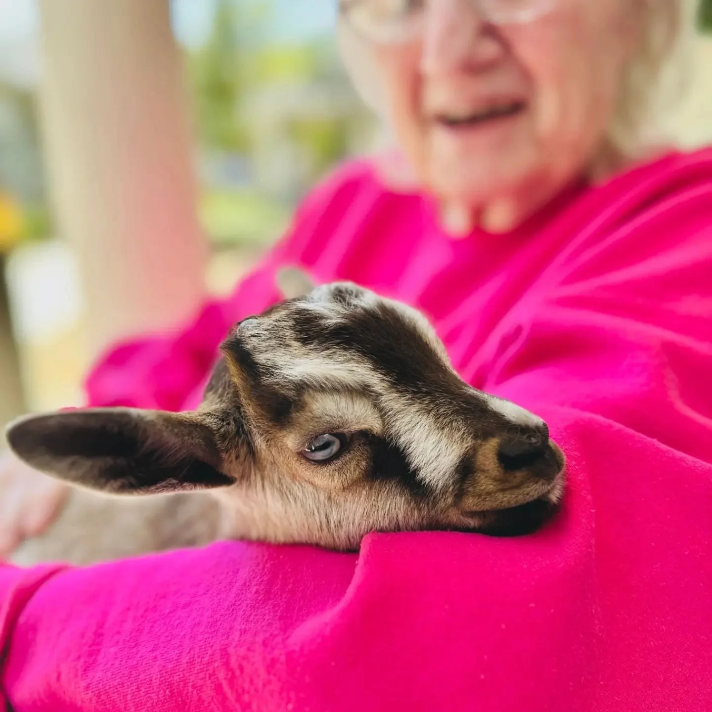 Our traveling zoo visits assisted living facilities, schools, daycares – basically, anywhere we are needed. So, who is part of this "we"? Our traveling zoo includes miniature horses, bunnies, goats, sheep, ducks, and mini pigs! We can customize the Traveling Zoo to meet your specific needs. Whether you want more animals or more time, let us take care of all the work. We'll set up our corrals and bring our animals to you, so you can enjoy the smiles and create lasting memories with these wonderful creatures.